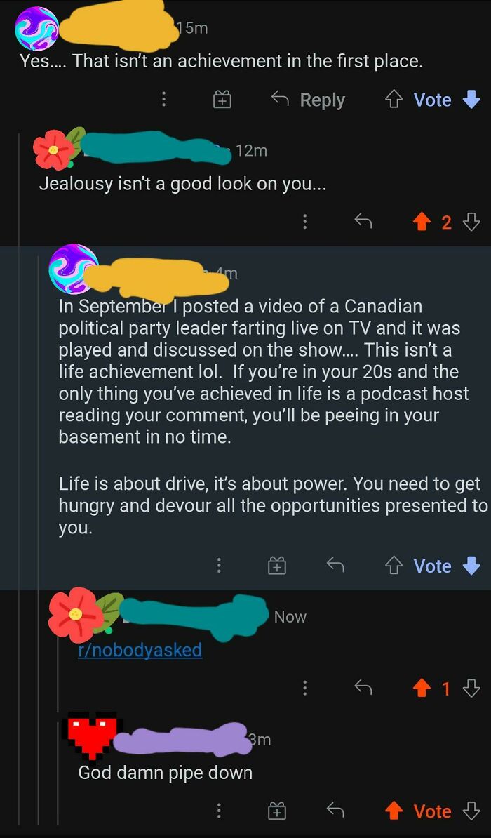 # 15 Cependant, il n’est pas trop occupé pour laisser un commentaire pour harceler un inconnu sur Internet sans raison